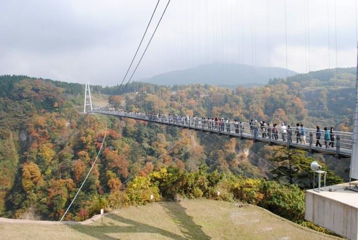 这座全日本最高、最长的人行专用桥“九重梦大吊桥”也是来到九州必去的景点之一。这里的高度有 173 公尺,这里着名的除了山景,还有当你走到桥的尾端时,还能看见日本瀑布百选之一的“震动之瀑”,瀑布的滂沱水势轰隆隆地落在山九州战少宁北谷之间,仿佛整个大地都震动了起来而得名,也让吊桥上的景九州色多了一份听觉的震撼。(日本首都延伸阅读:【统整】日本一年四季赏花攻略!不只樱花,这些景点一样不能错过!)